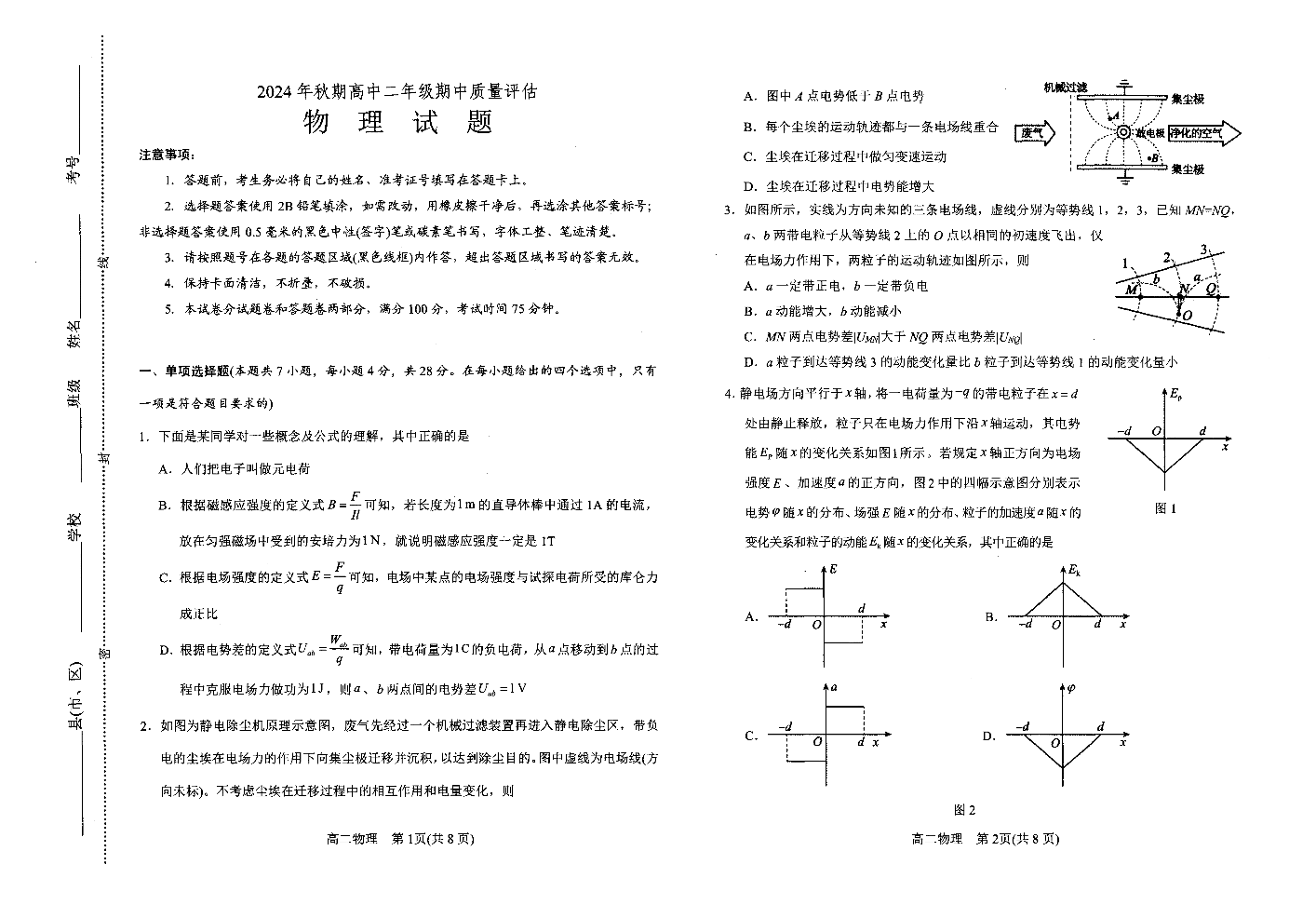 河南省南阳市2024-2025学年高二上学期11月期中考试物理