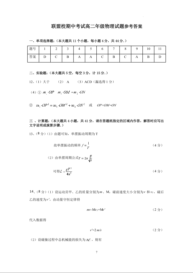 江苏省盐城市五校联考2024-2025学年高二上学期11月期中考试试题物理答案