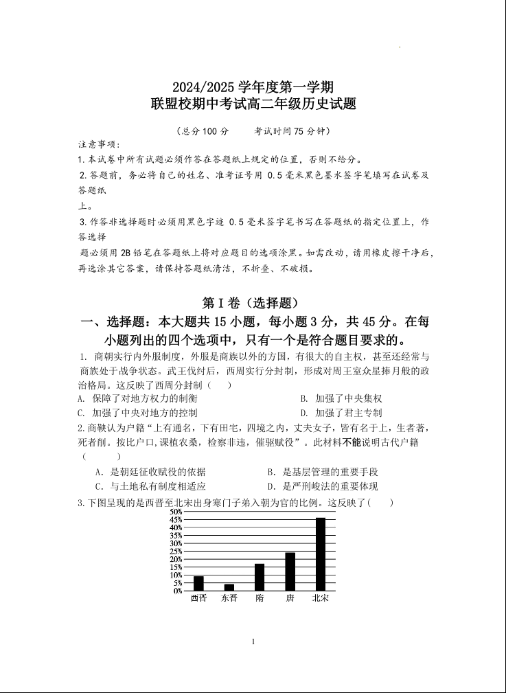 江苏省盐城市五校联考2024-2025学年高二上学期11月期中考试试题历史