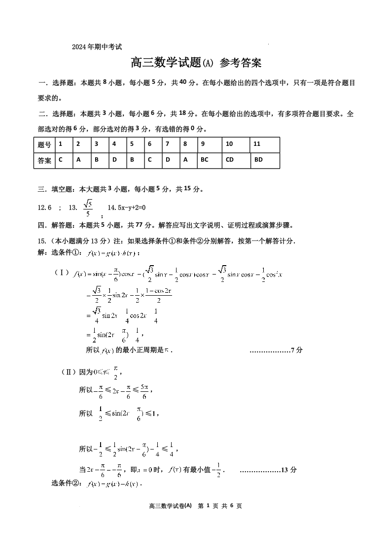 辽宁省鞍山市重点高中协作校2025届高三上学期期中考试数学答案
