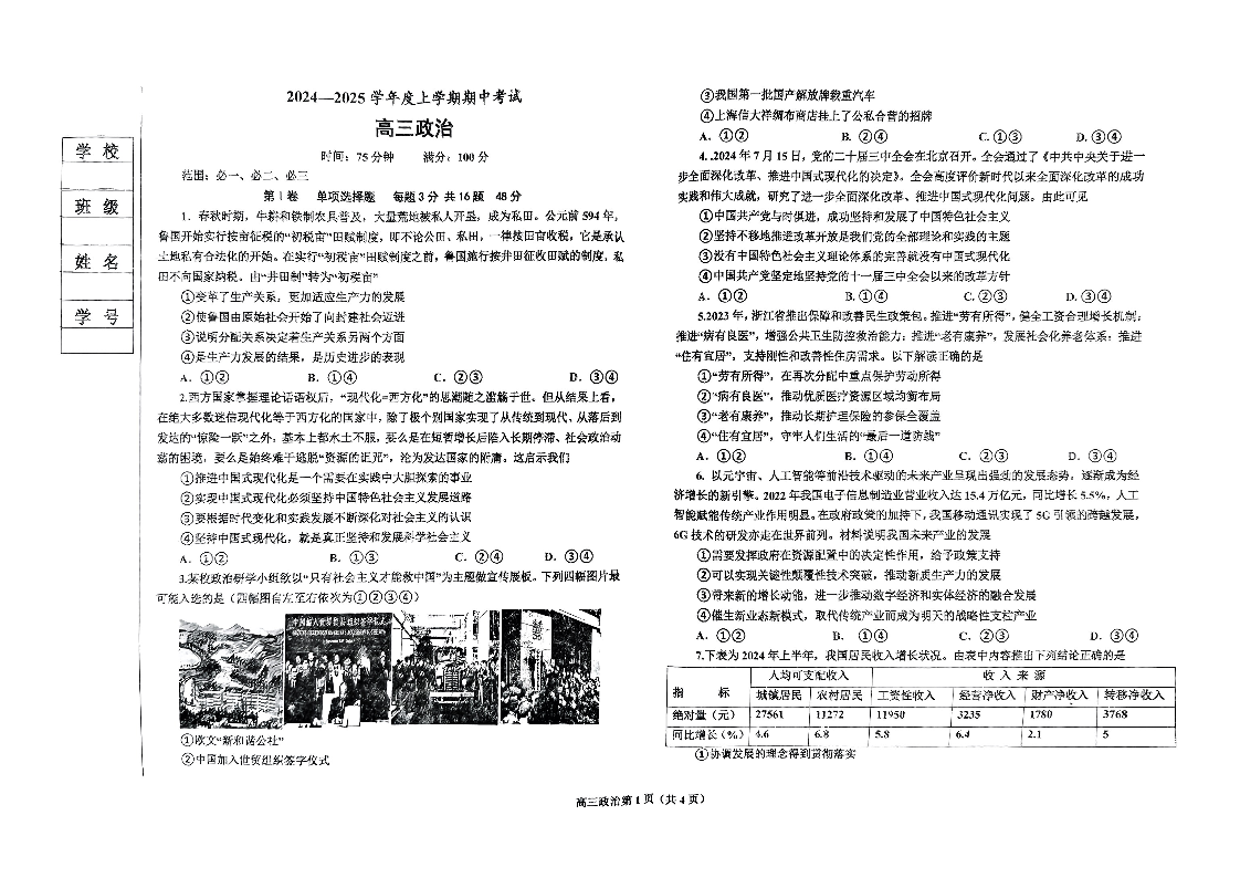 辽宁省鞍山市重点高中协作校2025届高三上学期期中考试政治