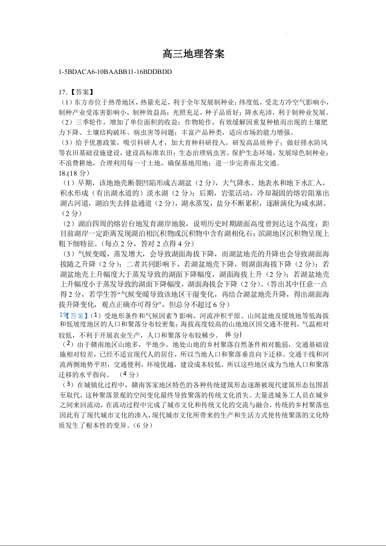 辽宁省鞍山市重点高中协作校2025届高三上学期期中考试地理答案