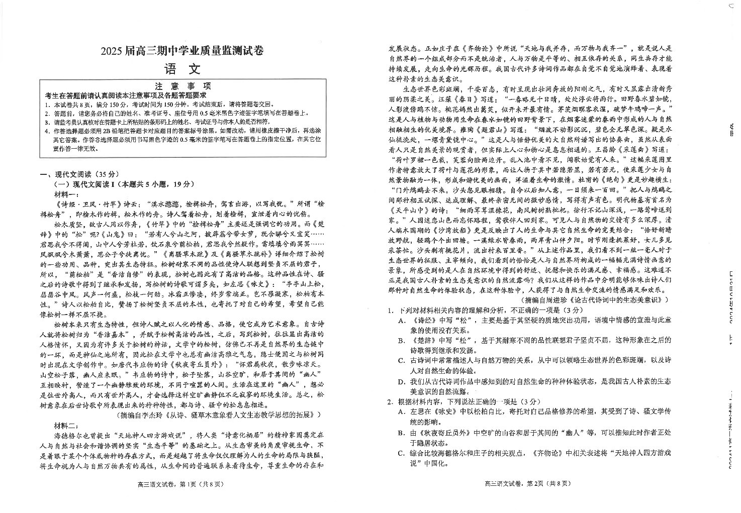 江苏省海安高级中学2025届高三上学期期中考试语文+答案