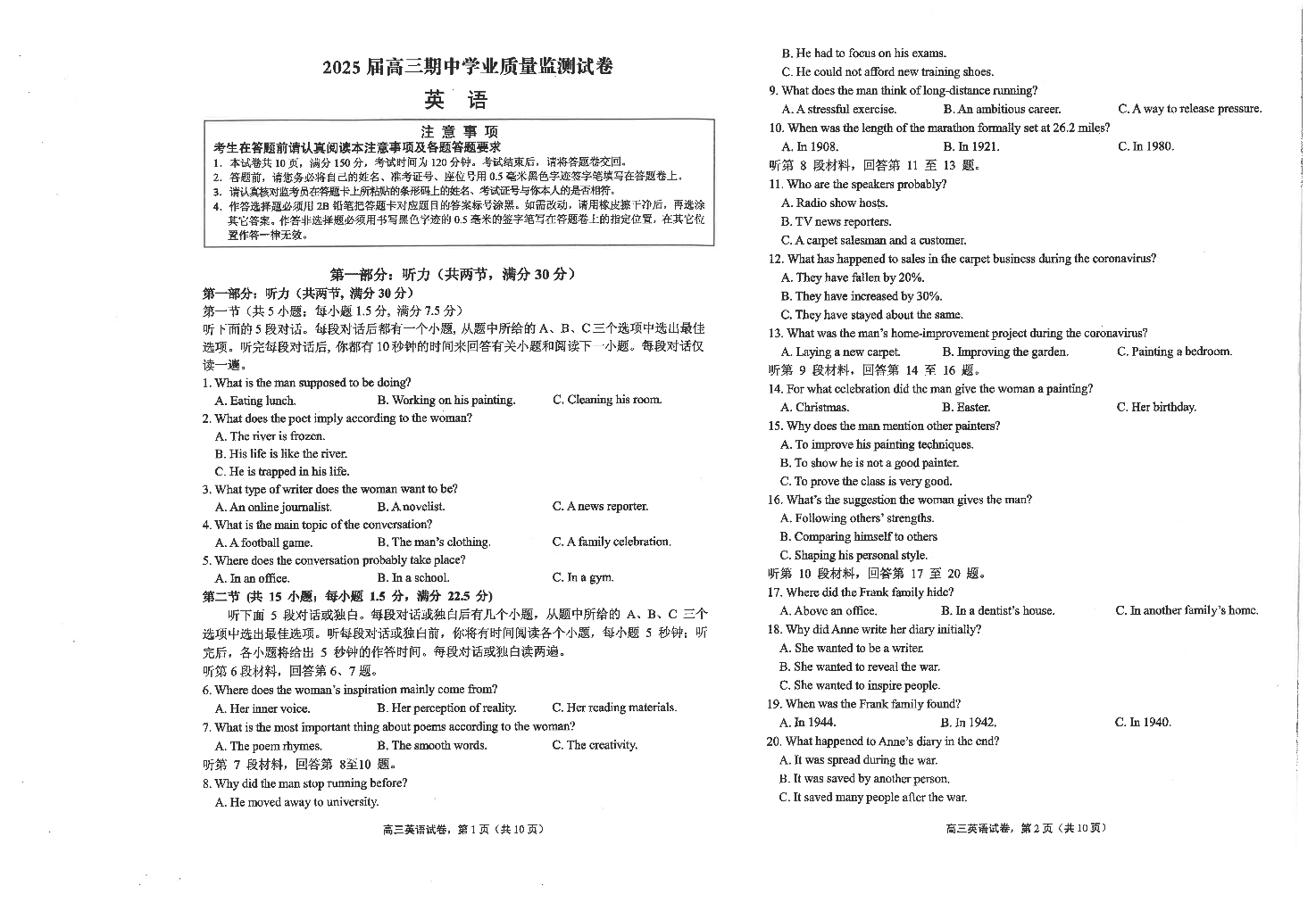 江苏省海安高级中学2025届高三上学期期中考试英语+答案