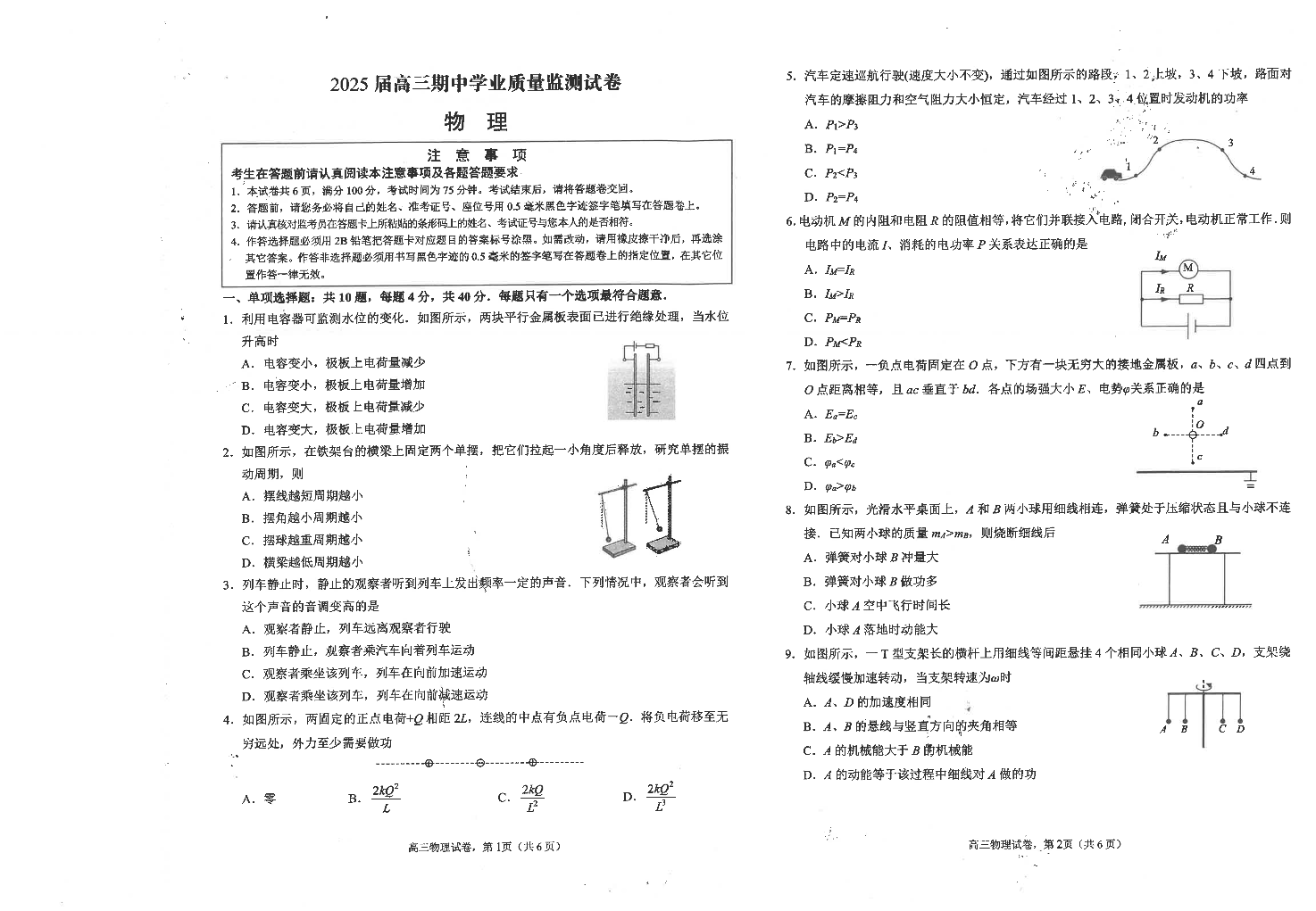 江苏省海安高级中学2025届高三上学期期中考试物理+答案