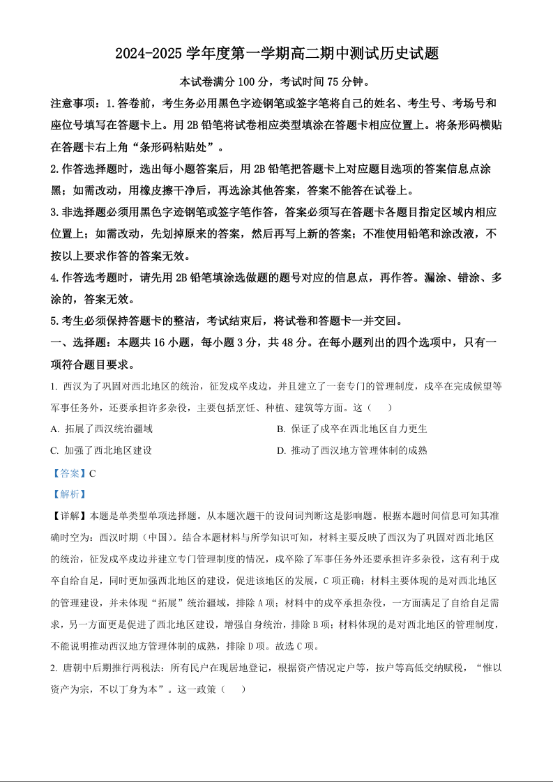 广东省阳江市高新区2024-2025学年高二上学期11月期中考试历史(精品解析班)