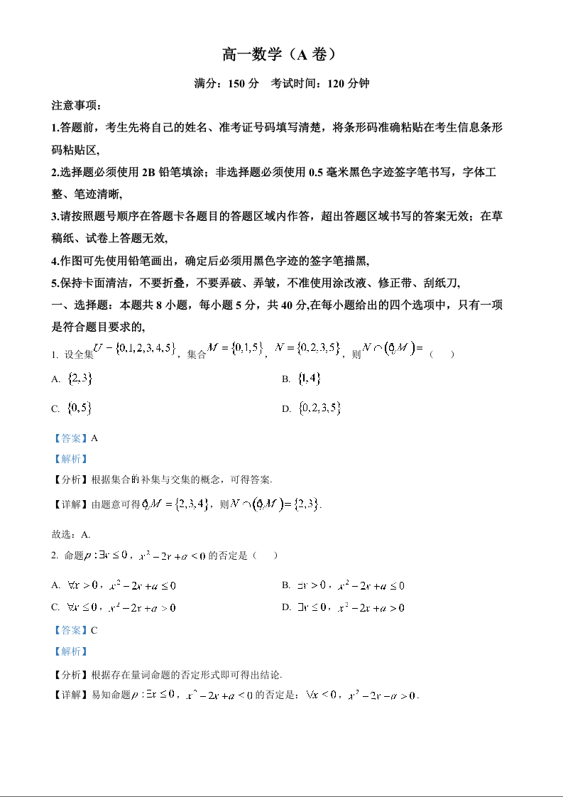 安徽省鼎尖教育2024-2025学年高一上学期11月期中考试数学A(精品解析版)