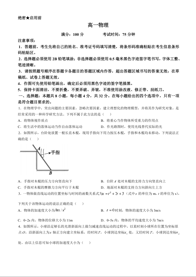 安徽省鼎尖教育2024-2025学年高一上学期11月期中考试物理