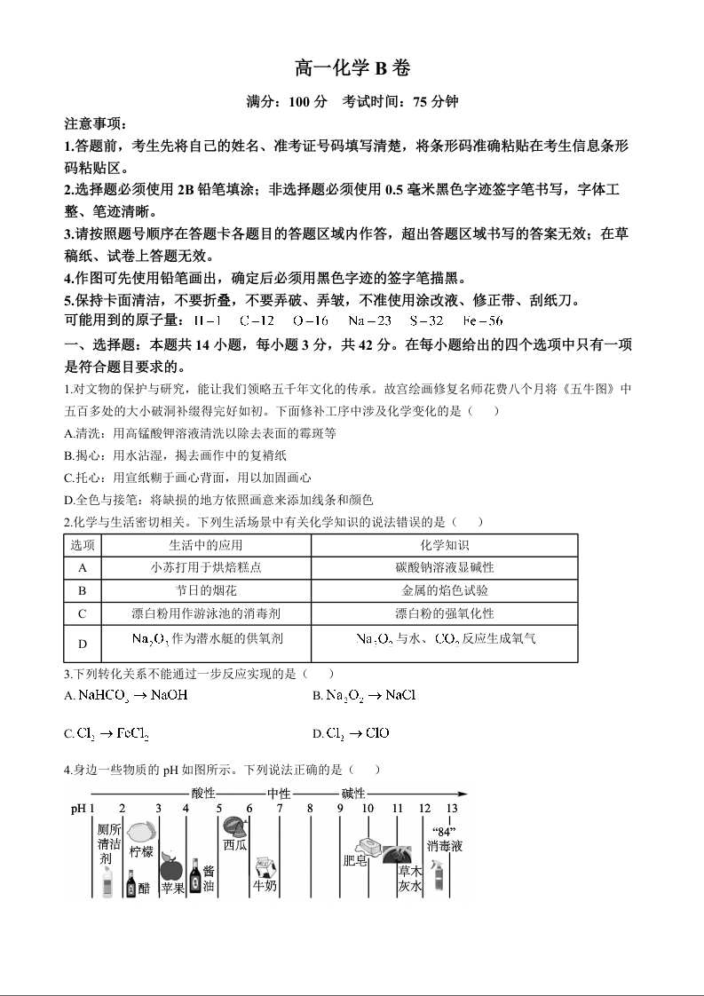 安徽省鼎尖教育2024-2025学年高一上学期11月期中考试化学B