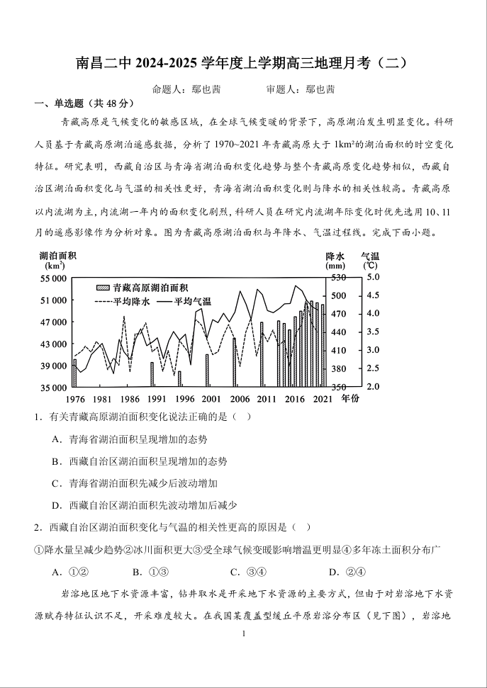 江西省南昌市第二中学2025届高三上学期月考(二)地理