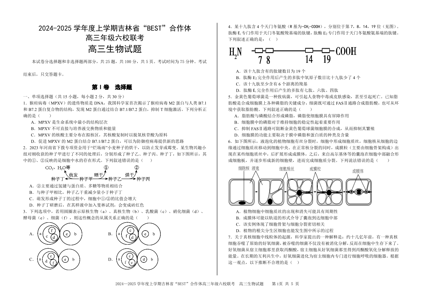 吉林省“BEST”合作体六校2025届高三上学期第三次联考生物