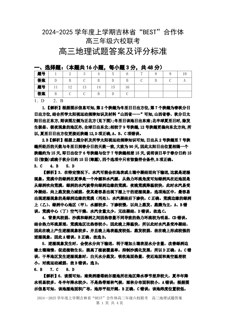 吉林省“BEST”合作体六校2025届高三上学期第三次联考地理答案