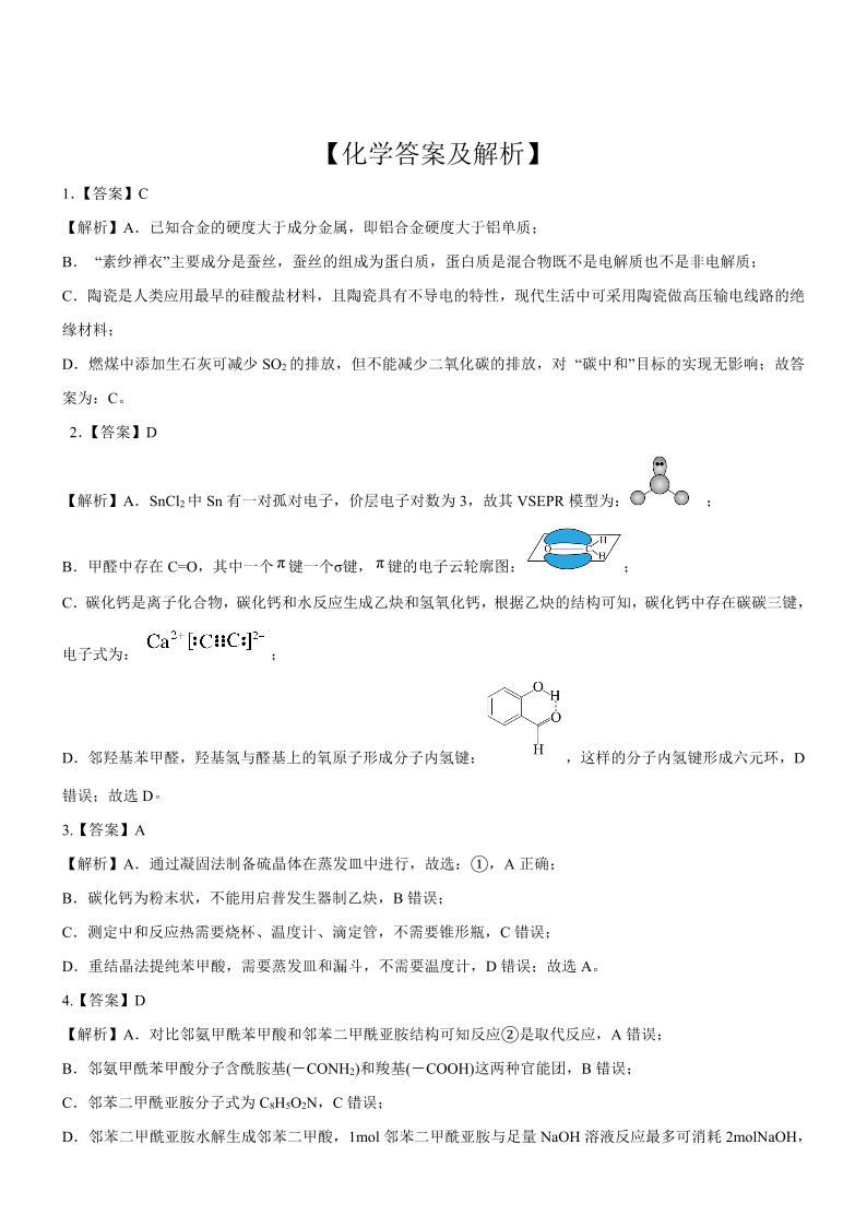 广西南宁市第二中学2025届高三上学期11月月考化学答案