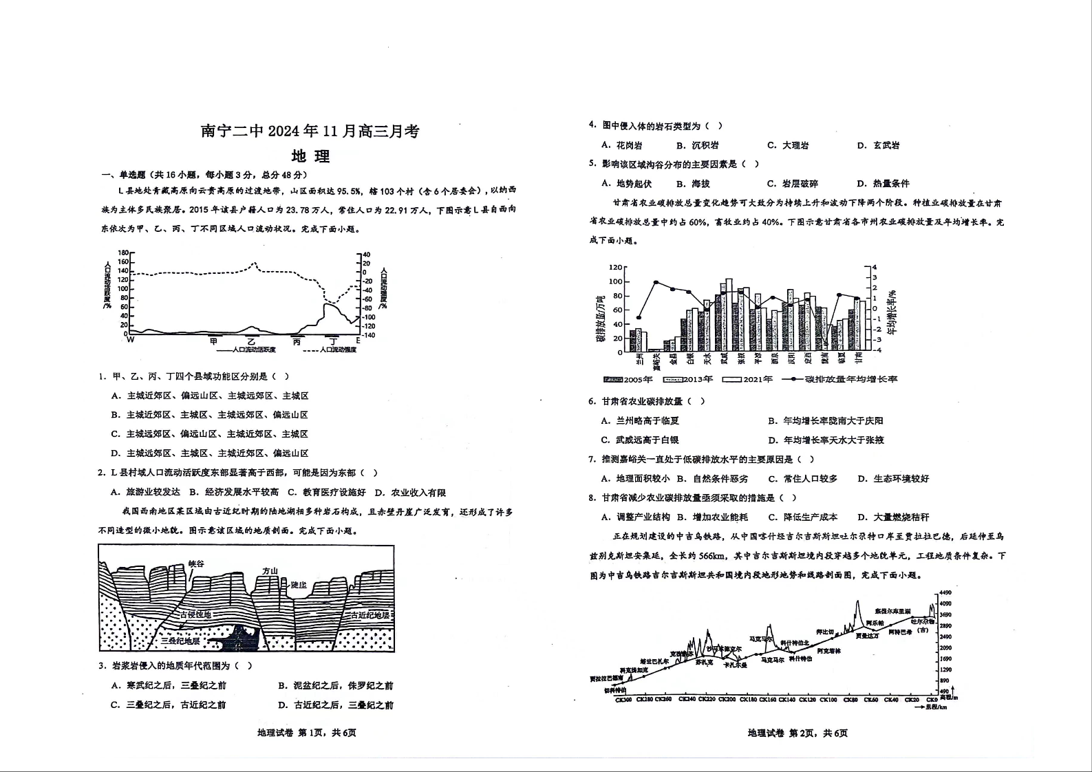 广西南宁市第二中学2025届高三上学期11月月考地理
