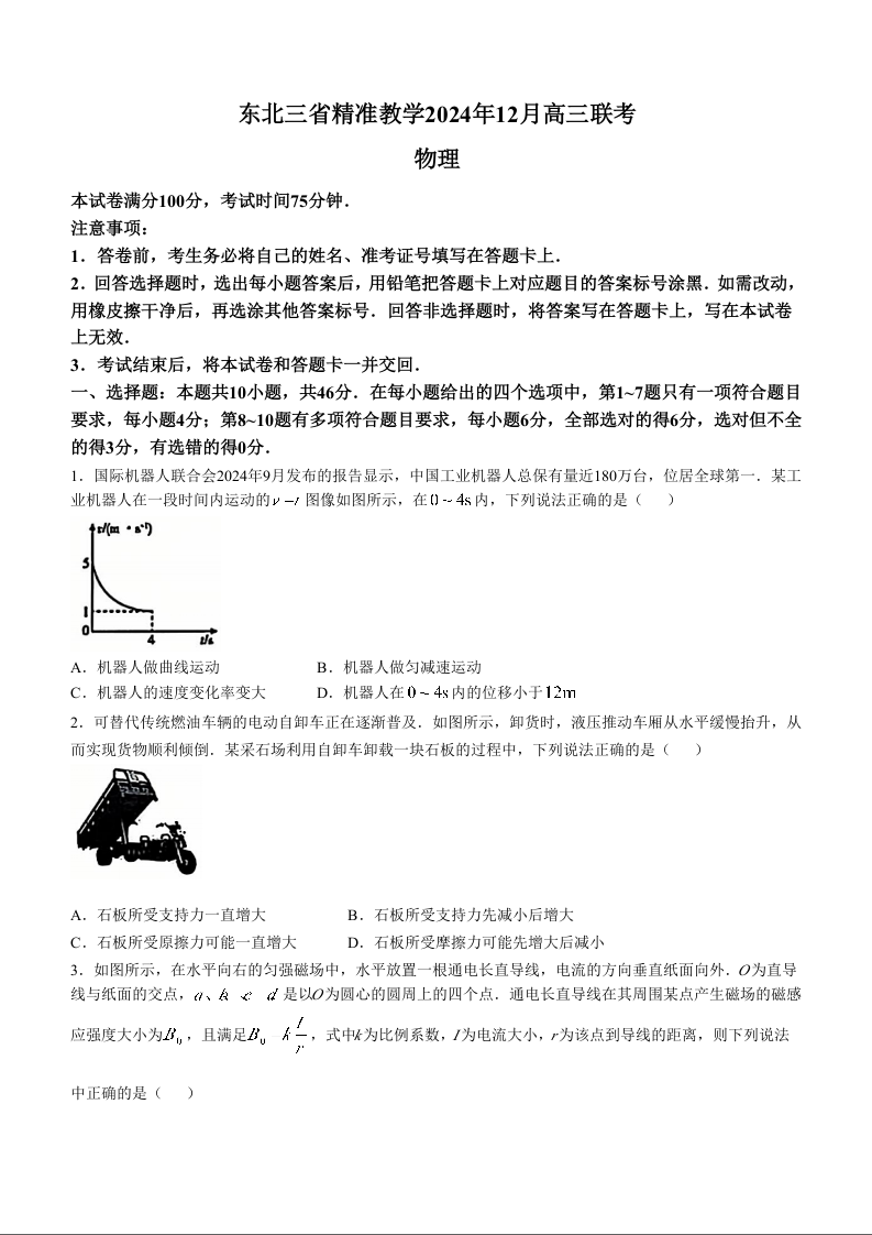 东北三省精准教学2024年12月高三联考物理+答案
