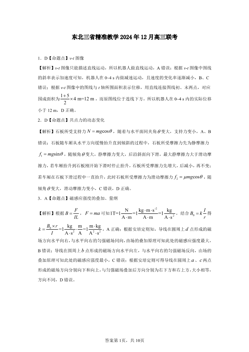 东北三省精准教学2024年12月高三联考物理解析