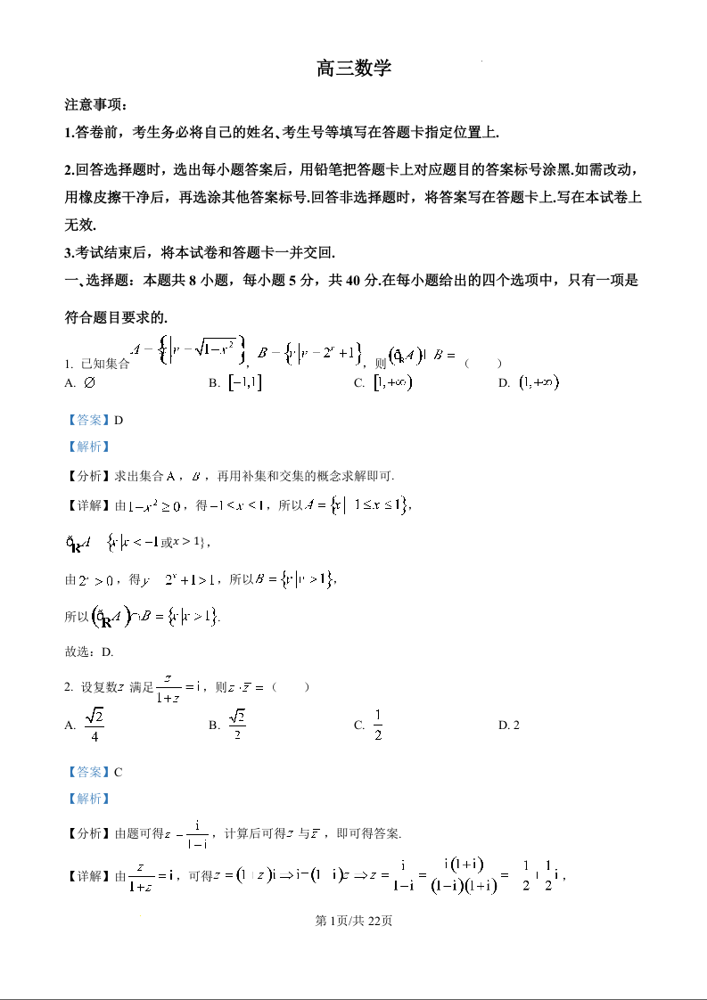 山东省威海市文登2025届高三上学期第一次模拟考试数学(精品解析版)