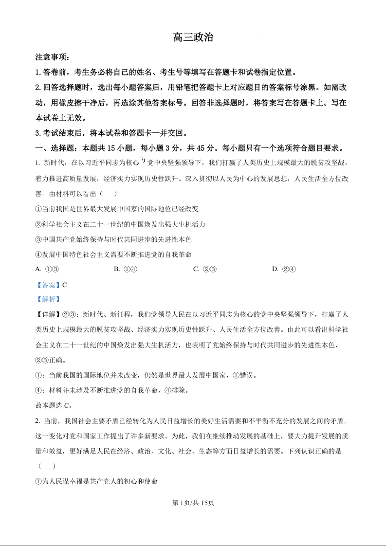 山东省威海市文登2025届高三上学期第一次模拟考试政治(精品解析版)