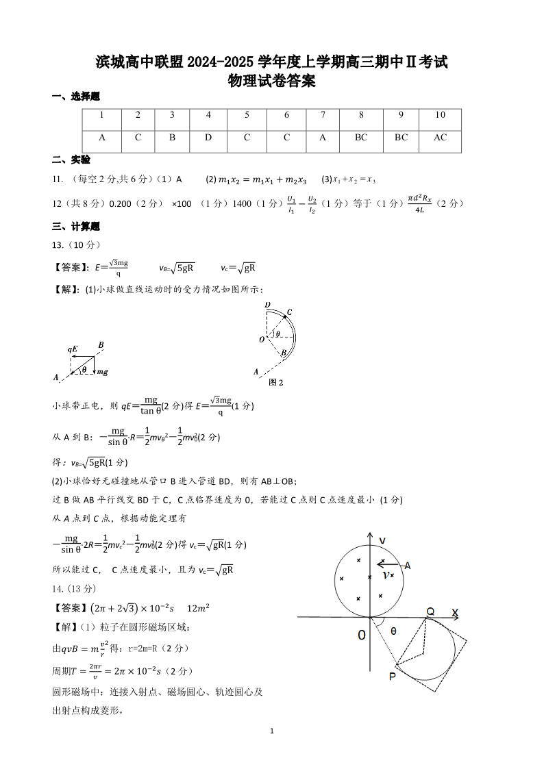 辽宁省大连市滨城高中联盟2025届高三上学期期中Ⅱ考试物理答案