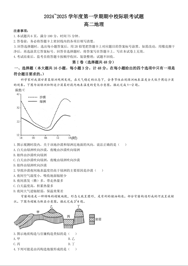 陕西省汉中市2024-2025学年高二上学期11月期中校际联考试题地理 Word版含答案.