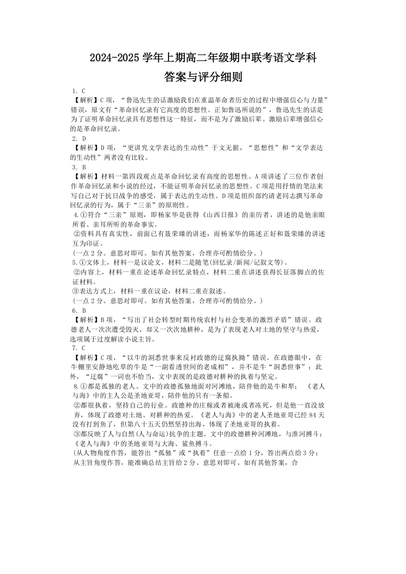 河南省郑州市十校联考2024-2025学年高二上学期11月期中考试语文答案