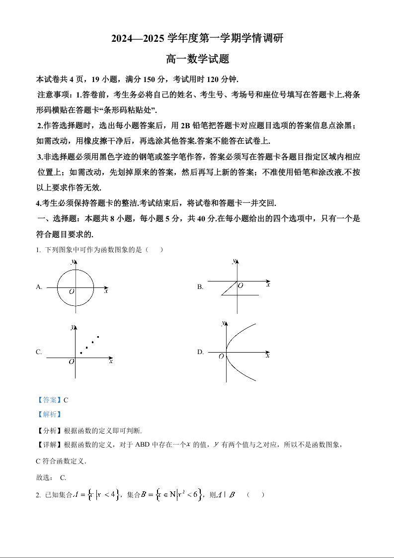 江苏省徐州市铜山区2024-2025学年高一上学期11月期中考试数学(精品解析版)