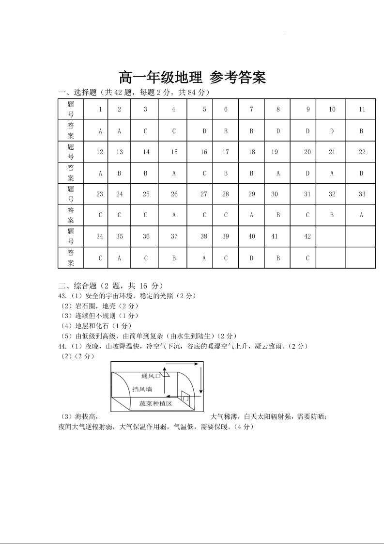 江苏省徐州市铜山区2024-2025学年高一上学期11月期中考试地理答案