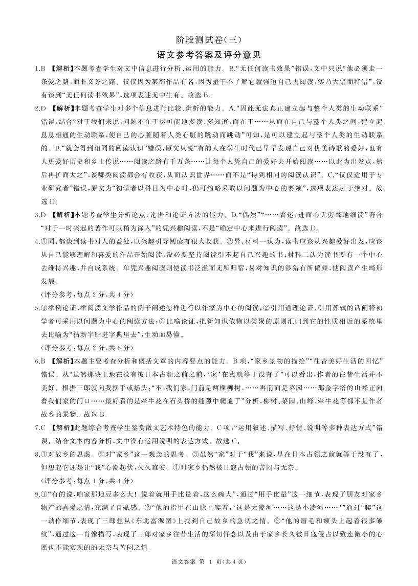 东北三省2024-2025学年高一上学期阶段测试三语文答案