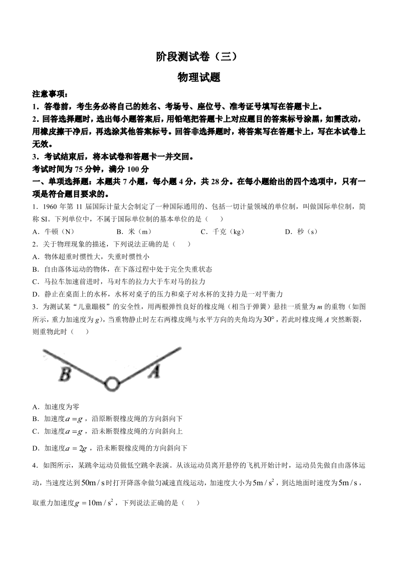 东北三省2024-2025学年高一上学期阶段测试三物理+答案