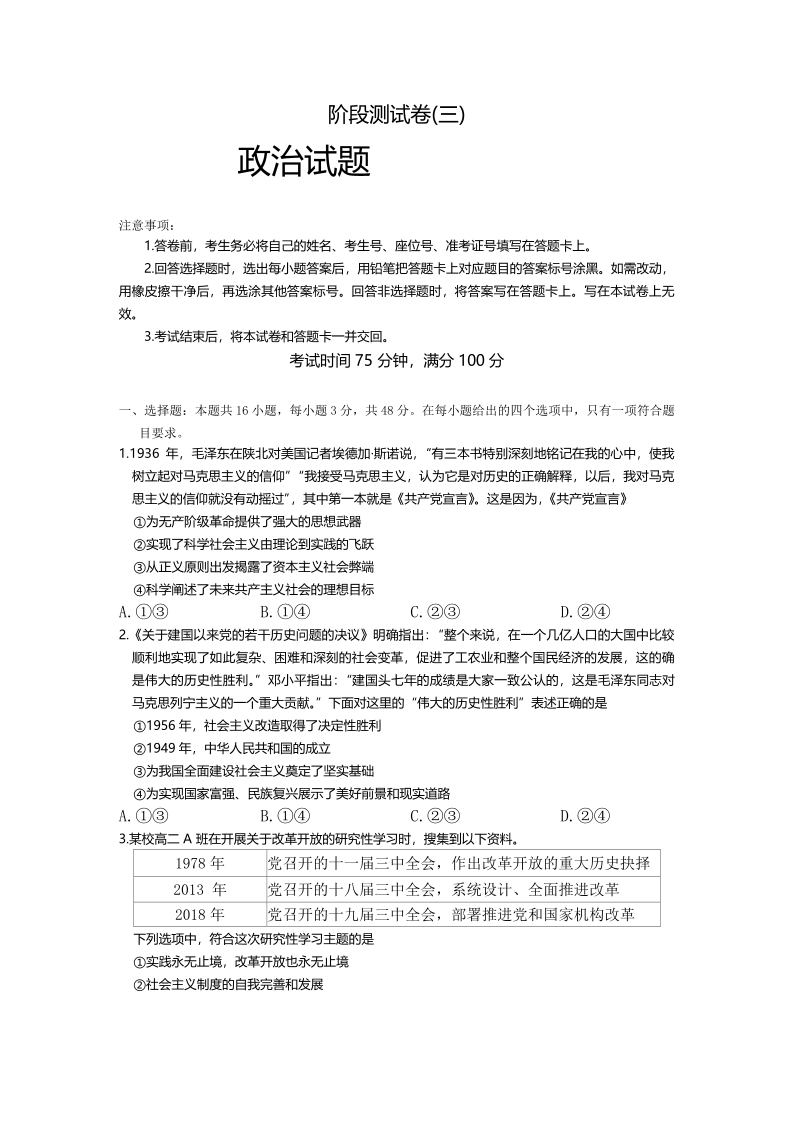 东北三省2024-2025学年高一上学期阶段测试三政治