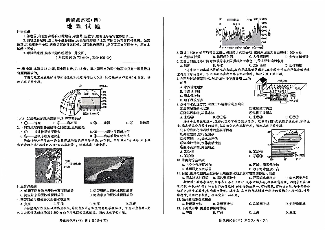东北三省2024-2025学年高一上学期阶段测试三地理