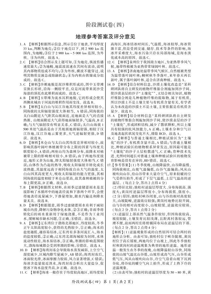 东北三省2024-2025学年高一上学期阶段测试三地理答案