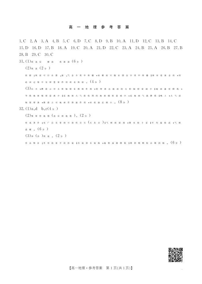 广东省佛山市H7联盟2024-2025学年高一上学期12月联考地理答案