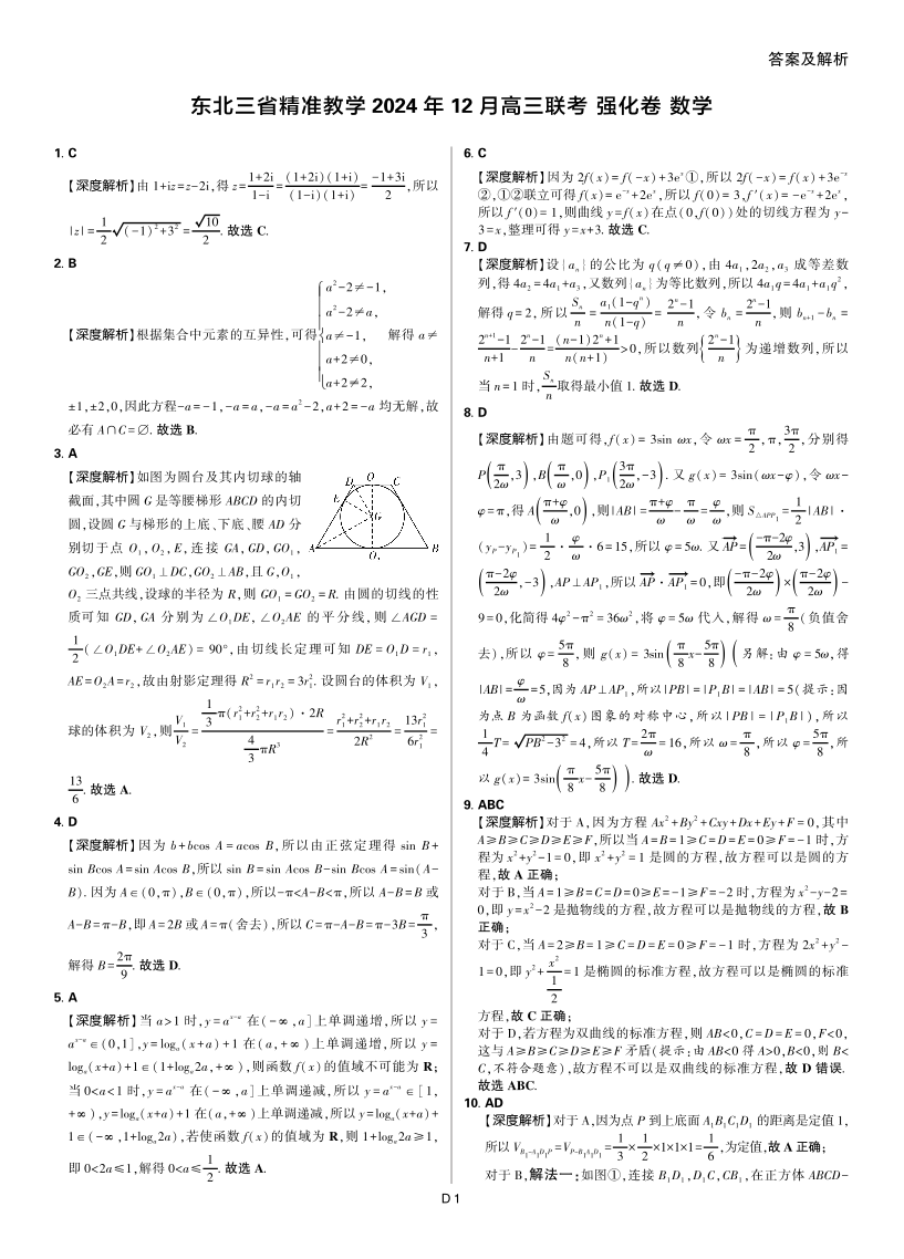 东北三省精准教学2025届高三上学期12月联考(强化卷)数学答案解析