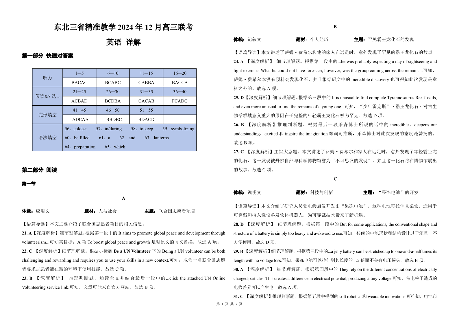 东北三省精准教学2025届高三上学期12月联考(强化卷)英语详解