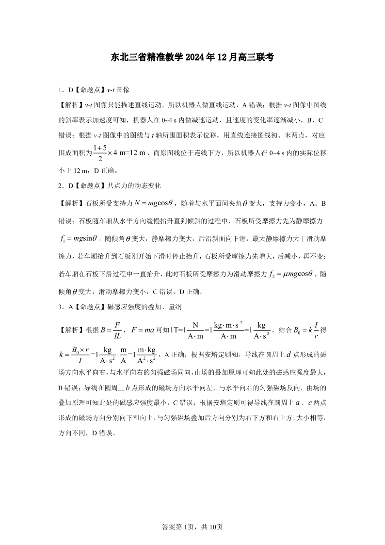 东北三省精准教学2025届高三上学期12月联考(强化卷)物理解析