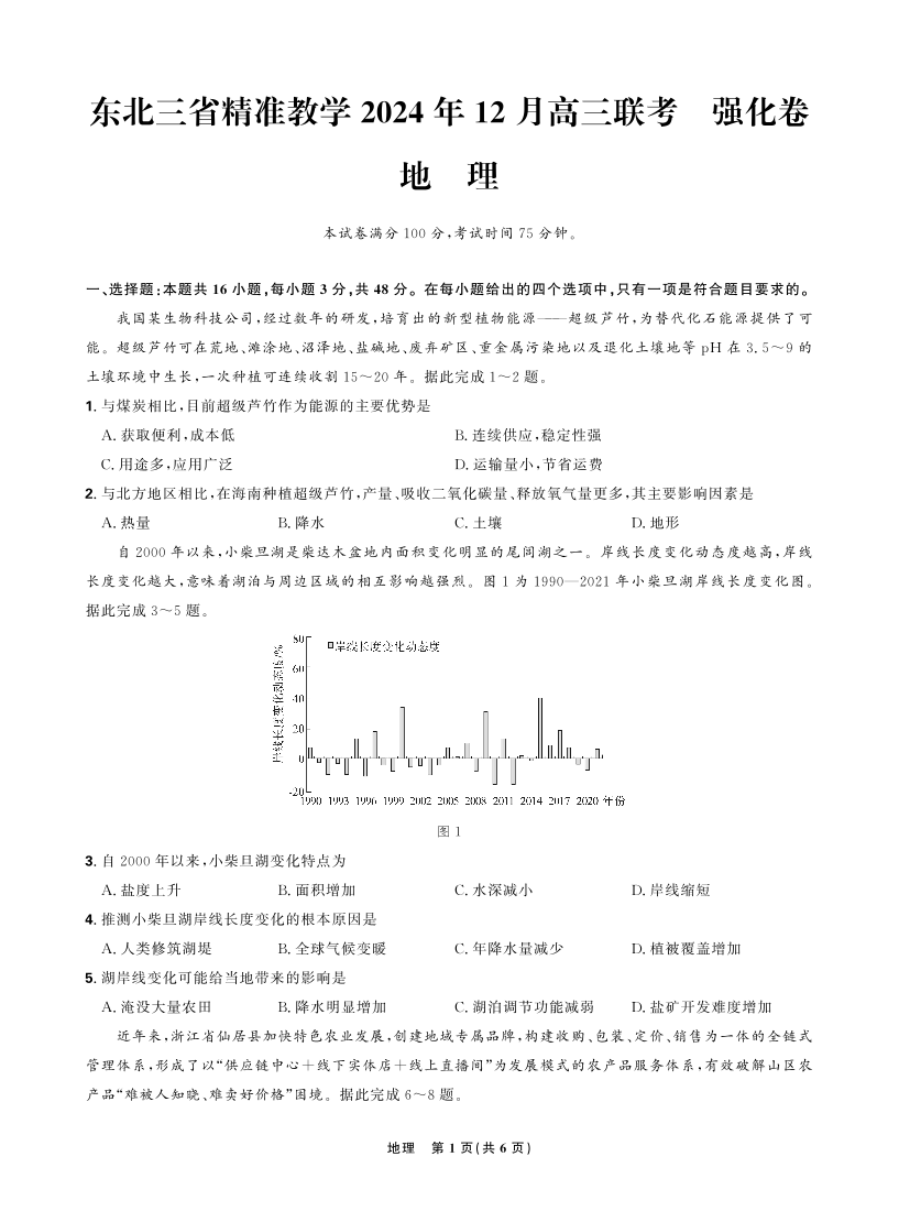 东北三省精准教学2025届高三上学期12月联考(强化卷)地理
