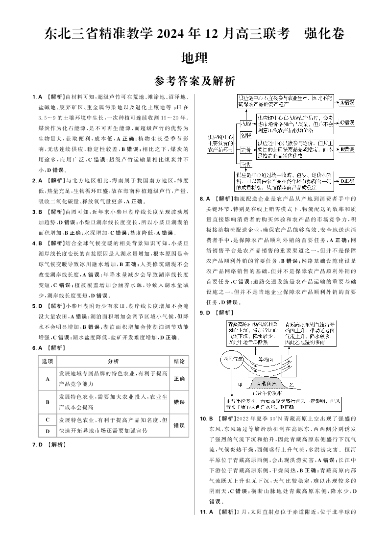 东北三省精准教学2025届高三上学期12月联考(强化卷)地理答案(详细解析)