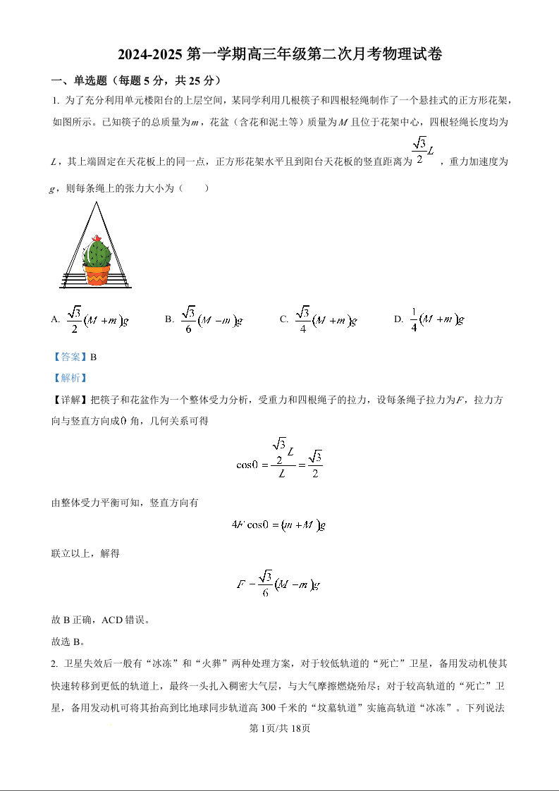 天津市第二十五中学2025届高三上学期第二次月考物理(精品解析版)