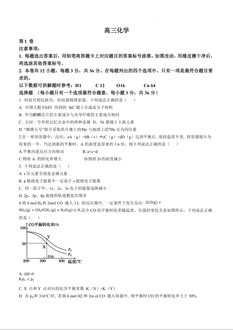 天津市第二十五中学2025届高三上学期第二次月考化学+答案