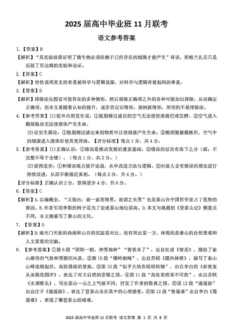 广西省新课程教研联盟2025届高三毕业班11月联考语文答案