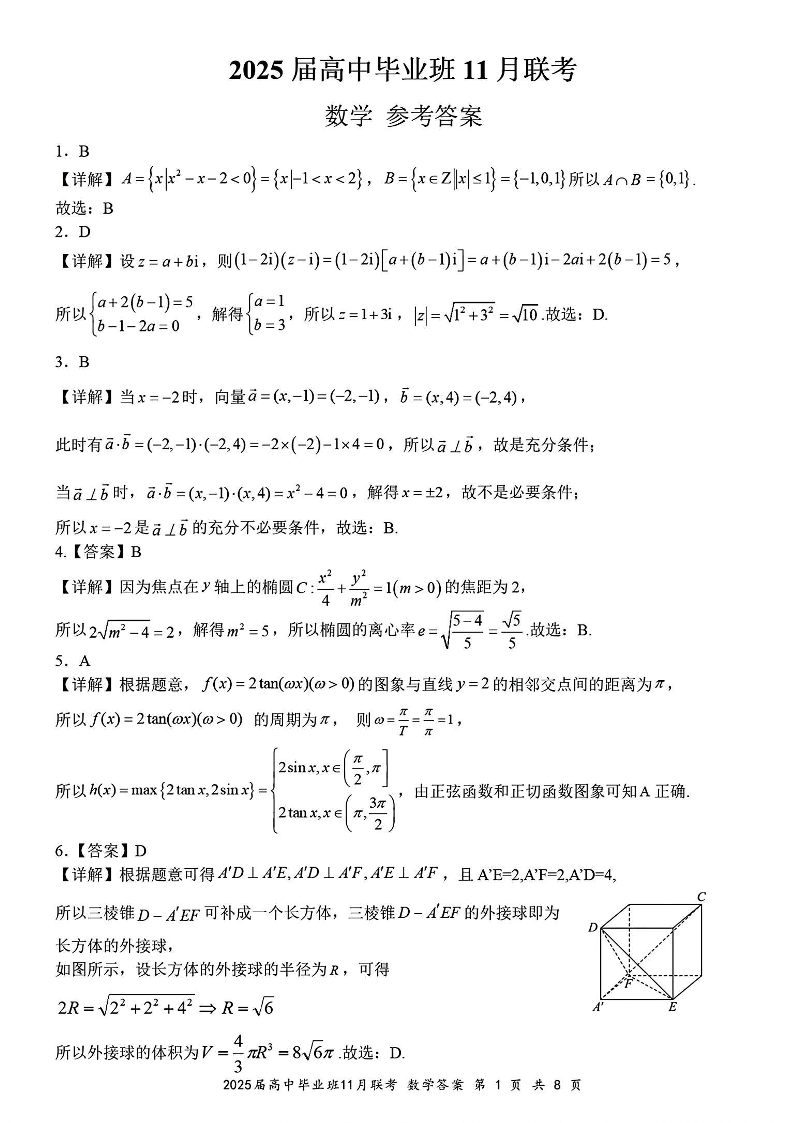 广西省新课程教研联盟2025届高三毕业班11月联考数学答案