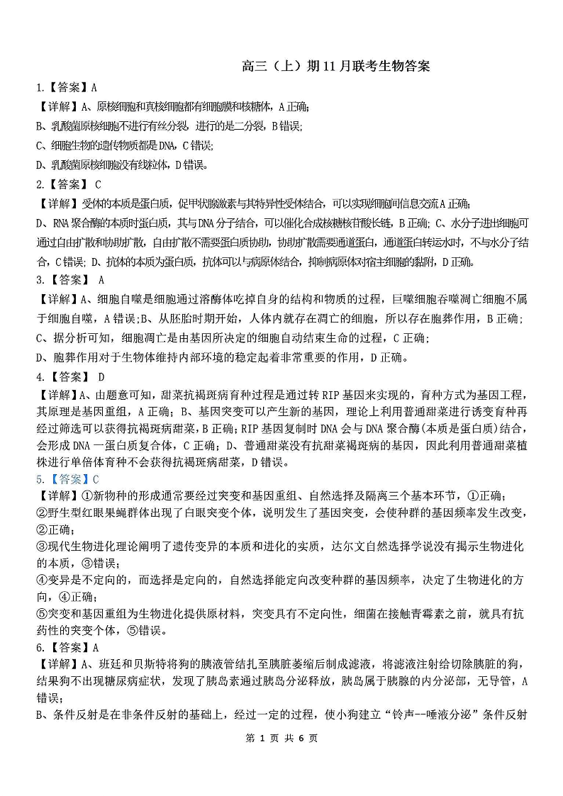广西省新课程教研联盟2025届高三毕业班11月联考生物答案
