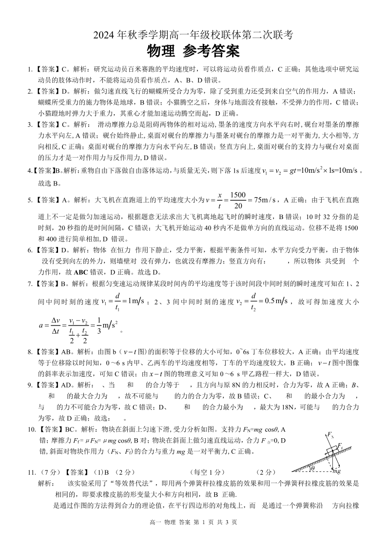 广西河池市2024-2025学年高一上学期12月联盟考试物理答案