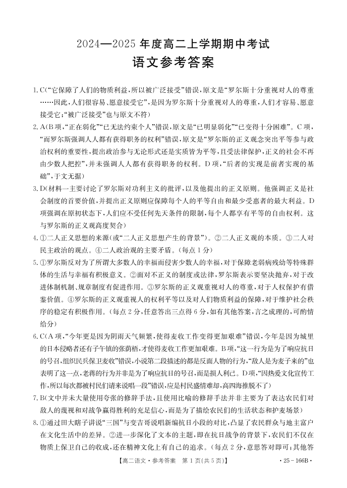 广东省名校联盟2024-2025学年高二期中考试语文答案