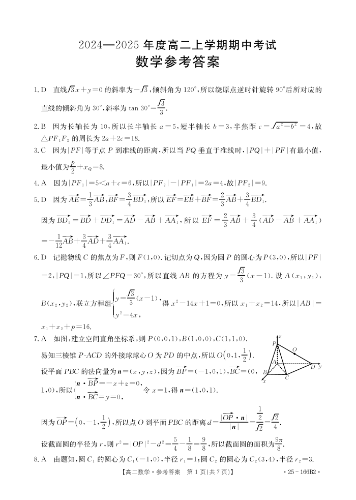 广东省名校联盟2024-2025学年高二期中考试数学答案