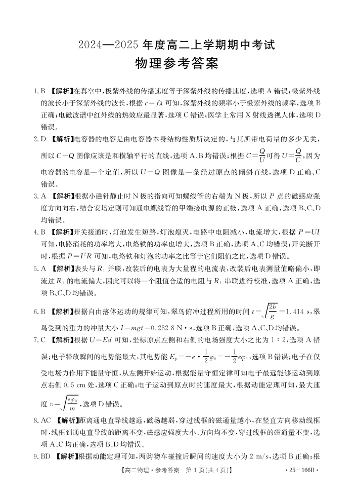广东省名校联盟2024-2025学年高二期中考试物理答案
