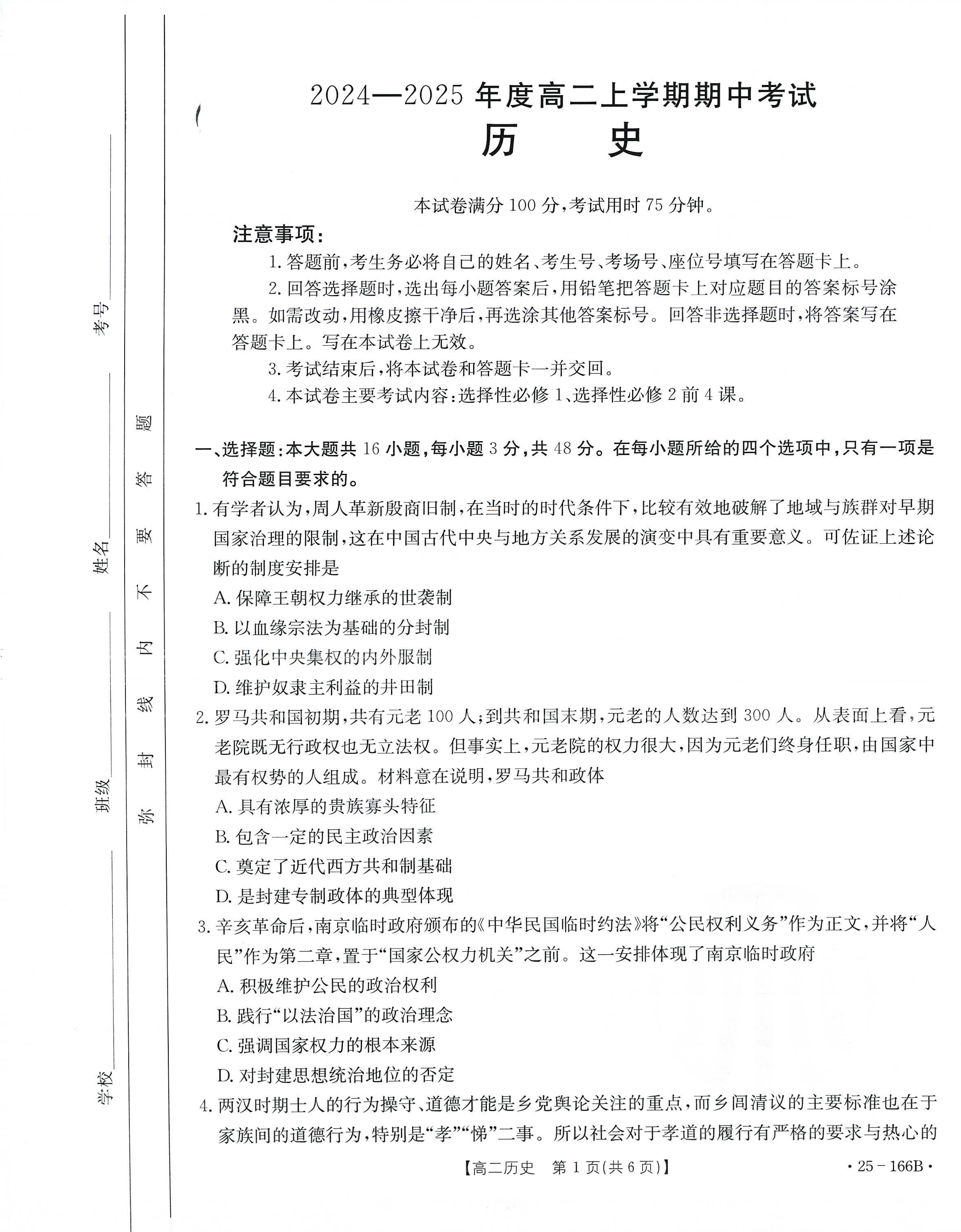 广东省名校联盟2024-2025学年高二期中考试历史