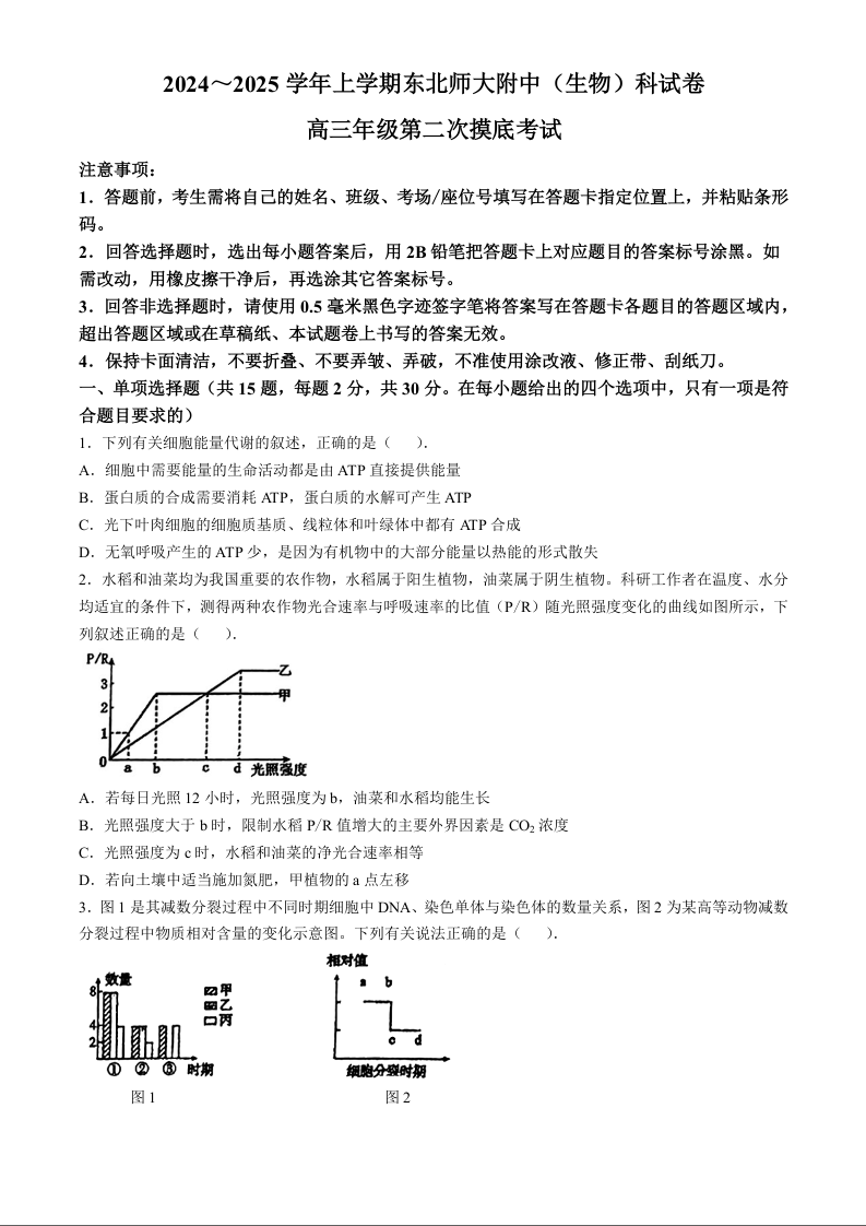 吉林省东北师大学附中2025届高三年级上学期第二次摸底考试生物+答案