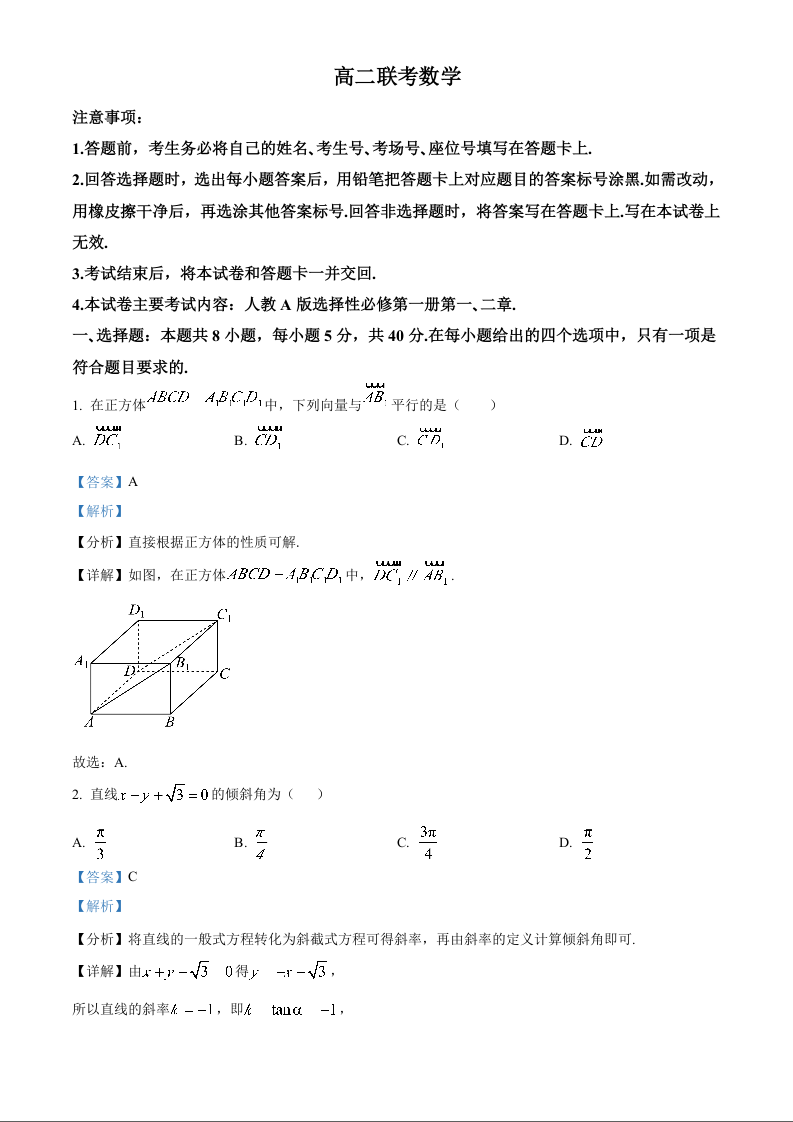贵州省黔东南苗族侗族自治州2024-2025学年上学期高二年级期中联考数学(精品解析版)